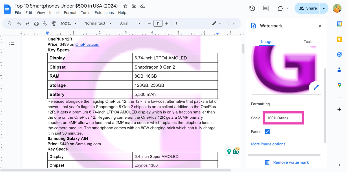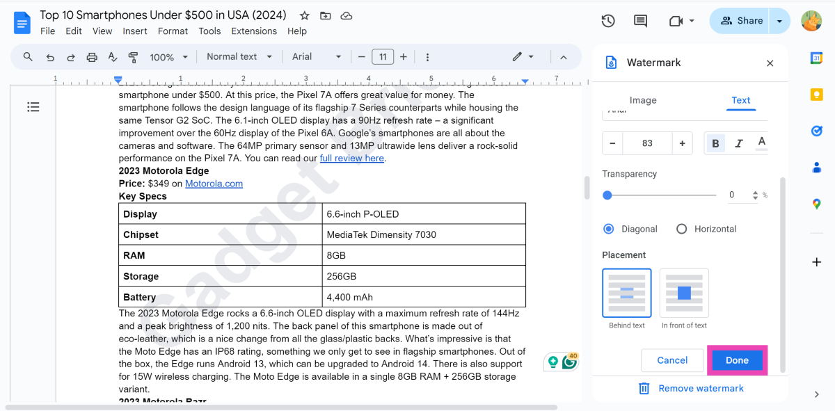 Πώς μπορώ να καταργήσω ένα υδατογράφημα στα Έγγραφα Google;