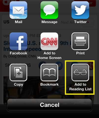 Εάν έχετε ένα iPad που χρησιμοποιεί το ίδιο αναγνωριστικό Apple και έχει ρυθμιστεί για το iCloud, τότε η λίστα ανάγνωσής σας συγχρονίζεται και στο iPad σας.