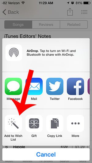 Ο οδηγός μας συνεχίζεται παρακάτω με πρόσθετες πληροφορίες σχετικά με τον τρόπο προσθήκης ενός άλμπουμ στη λίστα επιθυμιών σας στο iPhone 5, συμπεριλαμβανομένων των εικόνων αυτών των βημάτων.