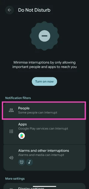 Με πρωταγωνιστές επαφές: Μόνο ένα σύνολο επαφών που επιλέξατε από εσάς θα μπορείτε να επικοινωνήσετε μαζί σας όταν είναι ενεργοποιημένη η λειτουργία DND.