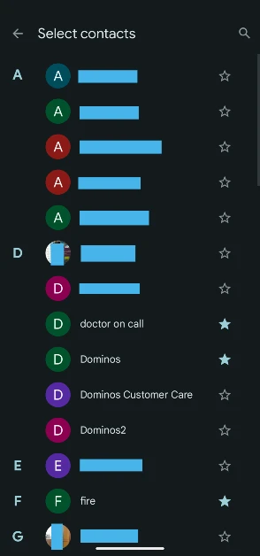 Βήμα 8:Χτυπήστε τοεικονίδιο αστέρωνΔίπλα στις επαφές που θέλετε να προσθέσετε στον λευκόχρυσο.