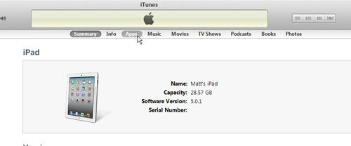 Βήμα 3: Κάντε κλικ στην καρτέλα "Εφαρμογές" στο επάνω μέρος του πίνακα του κεντρικού iTunes.