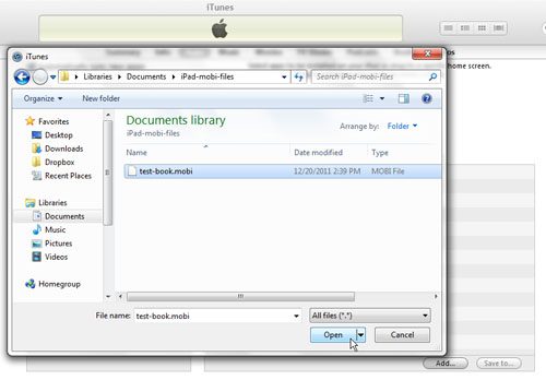 Ωστόσο, το iTunes έχει μια ενσωματωμένη λειτουργία μέσω της οποίας μπορείτε να συγχρονίσετε αρχεία .mobi με τον ίδιο τρόπο όπως θα κάνατε οποιοδήποτε άλλο είδος αρχείου πολυμέσων.