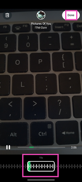 Βήμα 9:Χρησιμοποιήστε τοολισθητήςΣτο κάτω μέρος της οθόνης για να επιλέξετε το τμήμα του τραγουδιού που θέλετε να δημοσιεύσετε στην κατάστασή σας.