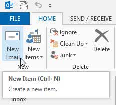 Βήμα 2: Κάντε κλικ στοΝέο emailκουμπί στοΝέοςΤμήμα της κορδέλας στην κορυφή του παραθύρου.