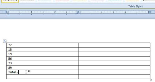 Τα βήματα σε αυτό το άρθρο θα υποθέσουν ότι έχετε ήδη έναν πίνακα λέξεων που περιέχει τις τιμές των κυττάρων που θέλετε να προσθέσετε. Θα εισαγάγουμε το άθροισμα μιας στήλης τιμών στο κελί κάτω από αυτές τις τιμές, πίσω από τη λέξη "συνολικά". Η συμπερίληψη της λέξης "Total" είναι προαιρετική, αλλά μπορεί να είναι χρήσιμη στην ταυτοποίηση πληροφοριών στον πίνακα.