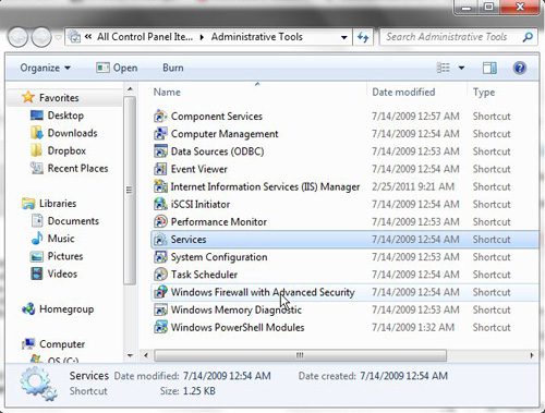 Βήμα 2: Κάντε κλικ στοΔιαχειριστικά εργαλείαεπιλογή στο επάνω μέρος αυτού του παραθύρου, η οποία θα ανοίξει ένα νέοΔιαχειριστικά εργαλείαπαράθυρο. Κάντε διπλό κλικ στοΥπηρεσίεςστοιχείο σε αυτό το παράθυρο για να ξεκινήσετε τοΥπηρεσίεςπαράθυρο.
