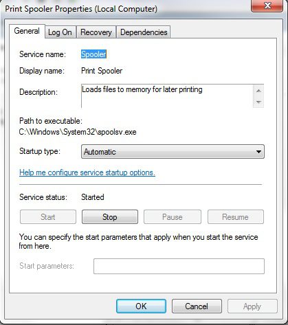 Συνήθως ένα κουμπί είναι γκρίζο εξαιτίας της τρέχουσας κατάστασης του spooler εκτύπωσης. Για παράδειγμα, εάν μπορείτε να κάνετε κλικ στοΣτάσηΚουμπί, αυτό οφείλεται στο γεγονός ότι το spooler εκτύπωσης λειτουργεί αυτή τη στιγμή.