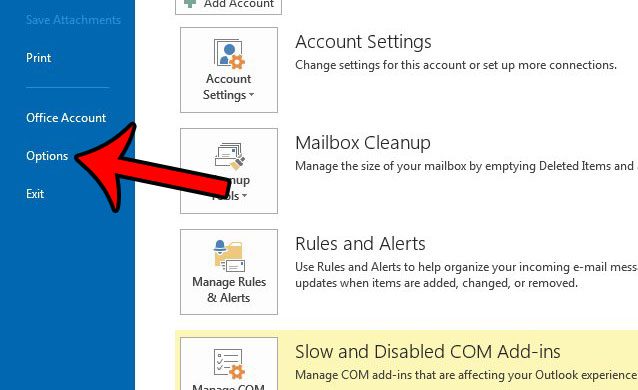 Βήμα 3: Κάντε κλικΕπιλογέςΣτη στήλη στην αριστερή πλευρά του παραθύρου.