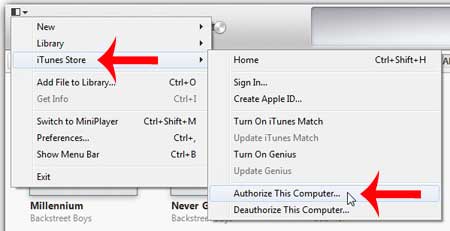 Βήμα 3: Επιλέξτε τοκατάστημα iTunesεπιλογή και, στη συνέχεια, κάντε κλικ στο κουμπίΕξουσιοδοτήστε αυτόν τον υπολογιστή.