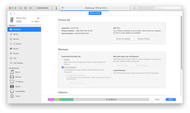 Δημιουργήστε αντίγραφα ασφαλείας του iPhone στο iTunes στο Mac