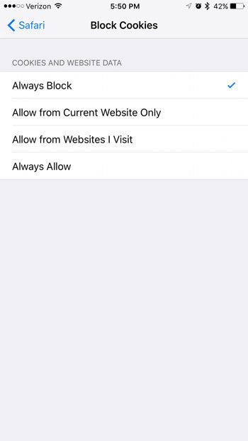 Ο παρακάτω οδηγός θα σας δείξει πού να βρείτε το μενού που σας επιτρέπει να ελέγχετε πώς συμπεριφέρονται τα cookies στη συσκευή σας. Μπορείτε να επιλέξετε από μια ποικιλία διαφορετικών επιλογών, συμπεριλαμβανομένου ενός που αποκλείει όλα τα cookies από όλους τους ιστότοπους.