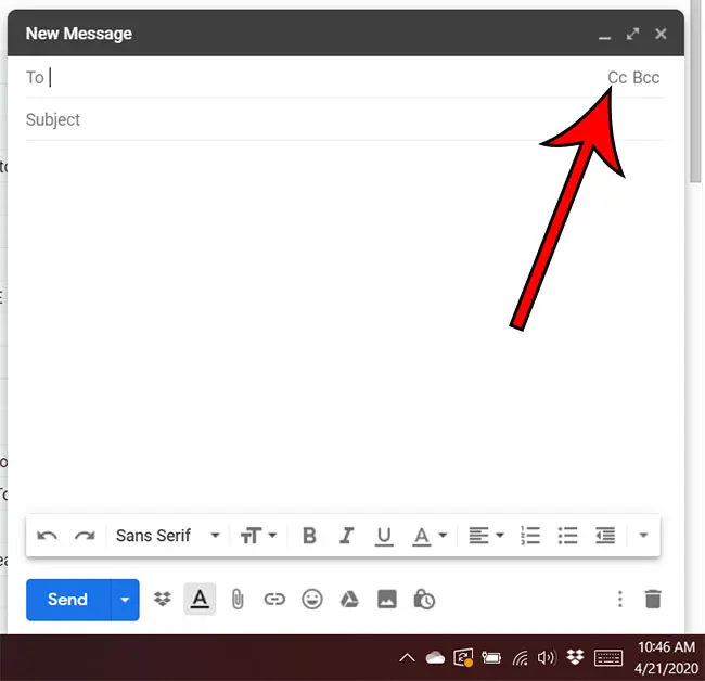 Τα βήματα σε αυτό το άρθρο πρόκειται να σας δείξουν πώς να cc κάποιον σε ένα μήνυμα ηλεκτρονικού ταχυδρομείου που στέλνετε στο Gmail από τον φορητό υπολογιστή ή τον επιτραπέζιο υπολογιστή σας.