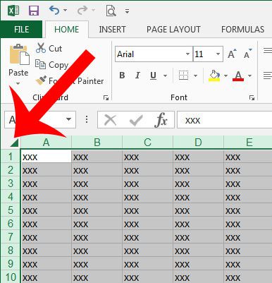 Βήμα 2: Κάντε κλικ στο κουμπί στην επάνω αριστερή γωνία του υπολογιστικού φύλλου για να επιλέξετε όλα τα κύτταρα.