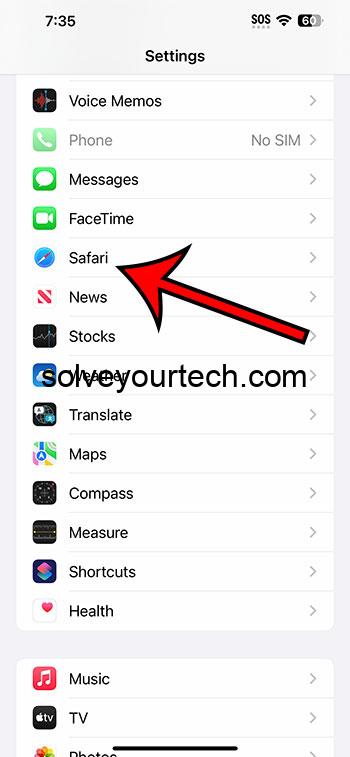 Βήμα 2: Μετακινηθείτε προς τα κάτω και επιλέξτε τοΣαφάριεπιλογή.