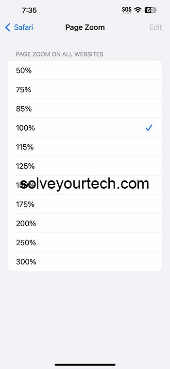 Βήμα 4: Πατήστε το επιθυμητό επίπεδο ζουμ που θέλετε να χρησιμοποιήσετε για τις ιστοσελίδες που βλέπετε στο iPhone σας.