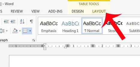 Βήμα 2: Κάντε κλικ μέσα σε ένα από τα κύτταρα πίνακα, τα οποία θα εμφανίσουν τοΕργαλεία επιτραπέζιωνμενού στο επάνω μέρος του παραθύρου.