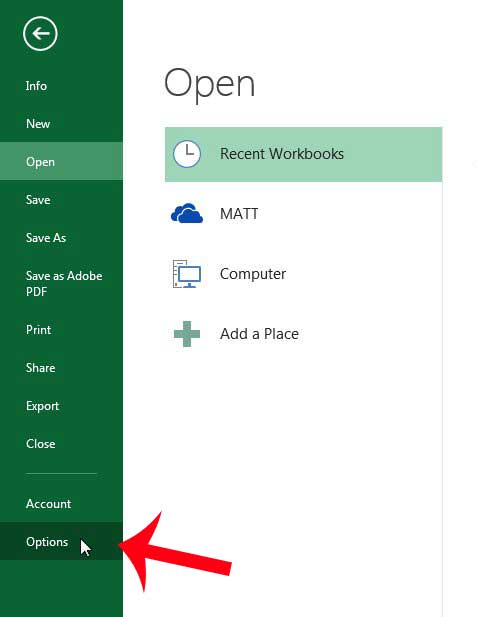 Βήμα 3: Κάντε κλικΕπιλογέςΣτη στήλη στην αριστερή πλευρά του παραθύρου.