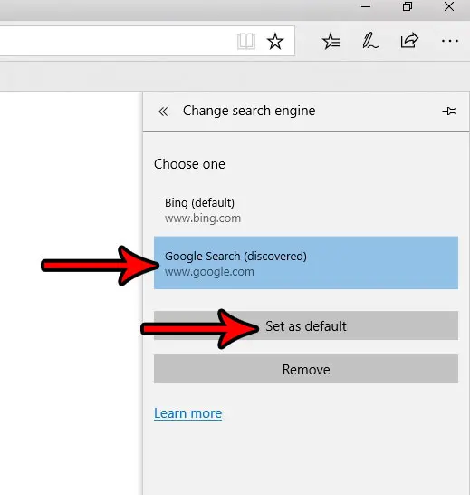 Τα βήματα σε αυτόν τον οδηγό θα επικεντρωθούν ειδικά στην εναλλαγή της προεπιλεγμένης μηχανής αναζήτησης στην άκρη από το Bing στο Google, αλλά μπορείτε επίσης να επιλέξετε να επιλέξετε μία από τις άλλες επιλογές μηχανής αναζήτησης.