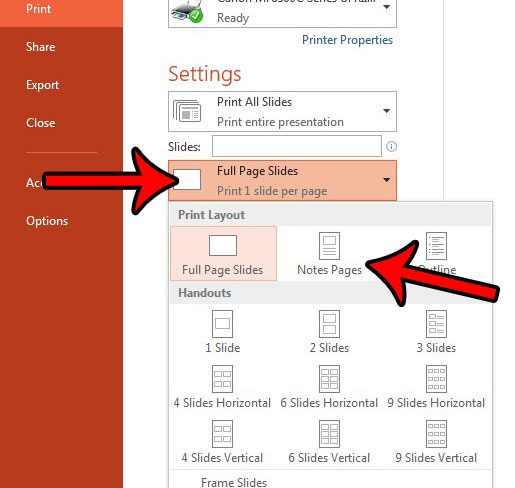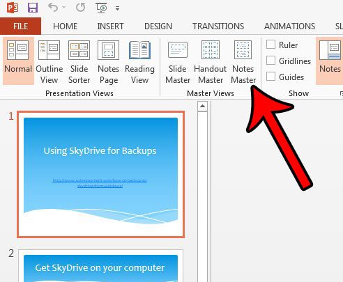 Τα παρακάτω βήματα θα σας δείξουν πώς να ανοίξετε το μενού των σημειώσεων, ώστε να μπορείτε να τροποποιήσετε τις ρυθμίσεις της γραμματοσειράς για τις πληροφορίες που πληκτρολογείτε στην ενότητα Σημείωση ηχείων των διαφανειών σας. Μπορείτε να κάνετε μόνο μια παγκόσμια τροποποίηση των ρυθμίσεων γραμματοσειράς σε αυτήν την τοποθεσία, πράγμα που σημαίνει ότι οποιαδήποτε γραμματοσειρά αλλάζει θα ισχύει για τις σημειώσεις δόρυ για κάθε διαφάνεια. Επιπλέον, αυτές οι αλλαγές γραμματοσειράς δεν είναι ορατές όταν επεξεργάζεστε τις διαφάνειες. Θα χρειαστεί να ελέγξετε την οθόνη προεπισκόπησης εκτύπωσης για να δείτε πώς φαίνονται με τη νέα ρύθμιση γραμματοσειράς.