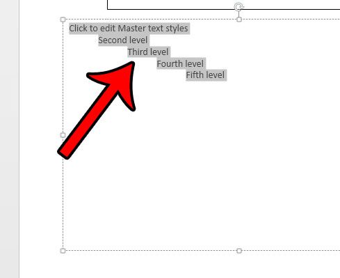 Βήμα 4: Κάντε κλικ μέσα στο πλαίσιο κειμένου και, στη συνέχεια, επιλέξτε κάθε επίπεδο σημειώσεων για το οποίο θέλετε να αλλάξετε τη γραμματοσειρά. Μπορείτε να πιέσετεCtrl + αΓια να επιλέξετε όλα αυτά.