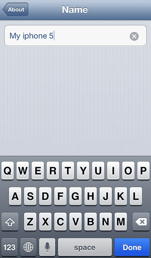 Επιλέξτε την επιλογή ΌνομαΒήμα 5: Πληκτρολογήστε το νέο όνομα για το iPhone σας 5 και, στη συνέχεια, πατήστε τοΓινώμενοςκουμπί στο πληκτρολόγιο.
