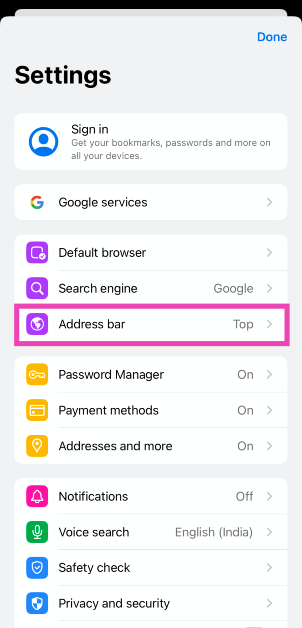 Μπορείτε επίσης να αλλάξετε τη θέση της γραμμής διευθύνσεων από τις ρυθμίσεις του Chrome.