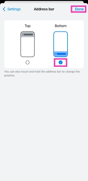 Αλλάξτε τη θέση της γραμμής διευθύνσεων στο Google Chrome (iOS)