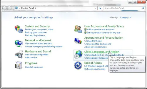 Βήμα 2: Κάντε κλικ στον πράσινο σύνδεσμο "ρολόι, γλώσσα και περιοχή".