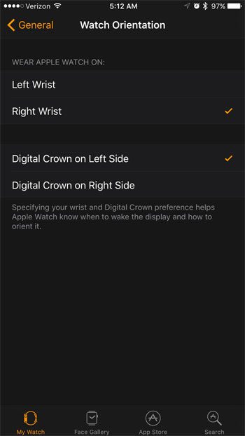 Όταν δημιουργήσατε για πρώτη φορά το Apple Watch στο iPhone σας, έπρεπε να επιλέξετε τον καρπό στον οποίο θα φορέσετε τη συσκευή, καθώς και την πλευρά στην οποία βρισκόταν η ψηφιακή κορώνα. Αυτό προκαλεί το Apple Watch να προσανατολίζει αυτόματα το πρόσωπό του, ώστε να το δείτε.