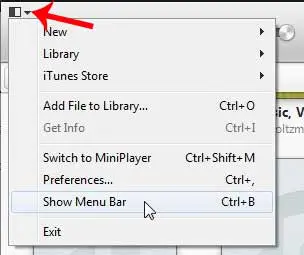 Βήμα 2: Κάντε κλικ στοiTunesκουμπί μενού στην επάνω αριστερή γωνία του παραθύρου και, στη συνέχεια, κάντε κλικ στοΕμφάνιση γραμμής μενούεπιλογή.