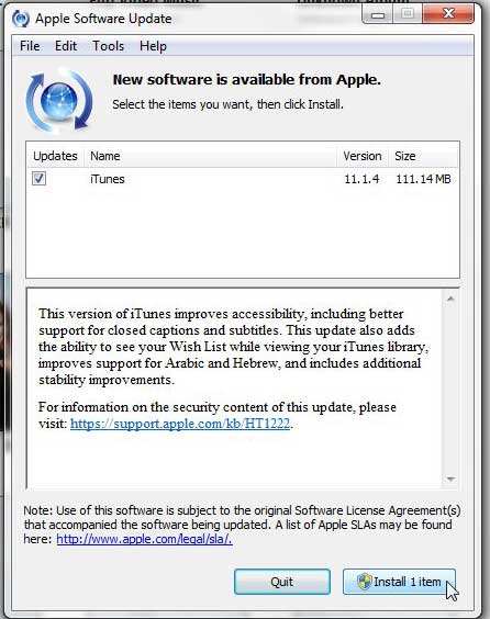 Οι έλεγχοι ενημέρωσης συνήθως εμφανίζονται αυτόματα και συχνά θα λαμβάνετε υποδείξεις από το iTunes Updater για να εγκαταστήσετε την τελευταία έκδοση του λογισμικού.