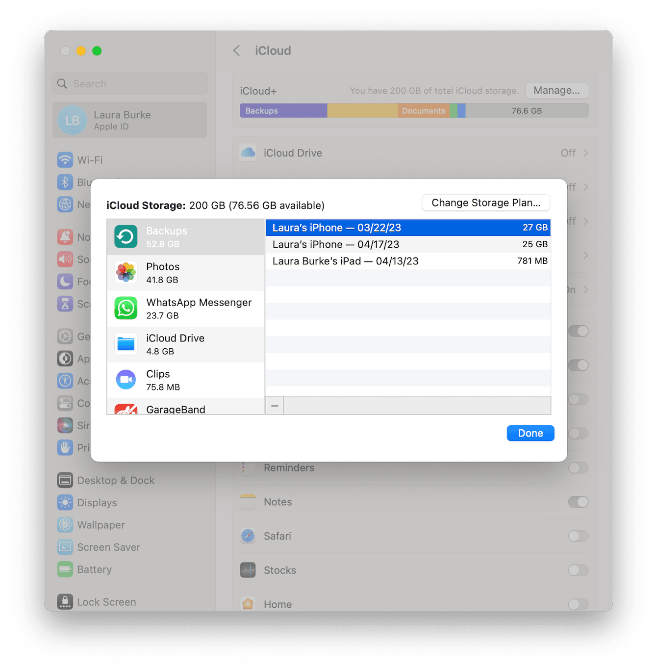 - Όταν τελειώσετε, κάντε κλικ στο κουμπί, πίσω στο κύριο μενού iCloud κάτω από το γράφημα και αλλάξτε τις εφαρμογές που δεν θέλετε πλέον να συγχρονίσετε με το iCloud σας.