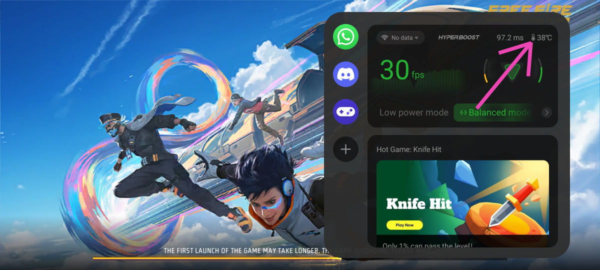 Τα περισσότερα smartphones Android διαθέτουν προσαρμοσμένα εργαλεία τυχερών παιχνιδιών που επιτρέπουν στους χρήστες να βλέπουν το FPS, να αλλάζουν τη φωνή τους, να επιτρέπουν το DND και να κάνουν πολλά περισσότερα ενώ τα παιχνίδια. Μπορείτε να χρησιμοποιήσετε τον πίνακα εργαλείων παιχνιδιών για να δείτε γρήγορα την εσωτερική θερμοκρασία του τηλεφώνου σας. Απλά σύρετε προς τα κάτω από τις κορυφαίες γωνίες ή σπρώξτε προς την οθόνη από κάθε άκρη του τηλεφώνου για να αποκαλύψετε τον πίνακα εργαλείων τυχερών παιχνιδιών. Η θερμοκρασία θα παρατίθεται στην επάνω ενότητα.