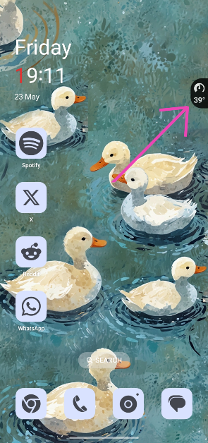 Βήμα 5:Μεταβείτε σε άλλη εφαρμογή ή σελίδα στο τηλέφωνό σας. Το τρέχονεσωτερική θερμοκρασίαθα εμφανιστεί στη δεξιά άκρη της οθόνης.