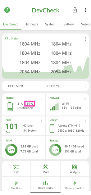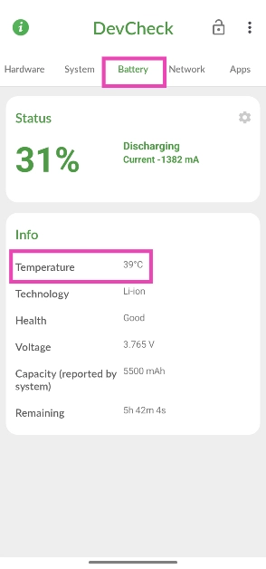 Χρησιμοποιήστε εφαρμογές όπως DevCheck Device & System Info, Castro και Accubattery για να ελέγξετε την εσωτερική θερμοκρασία του smartphone σας.