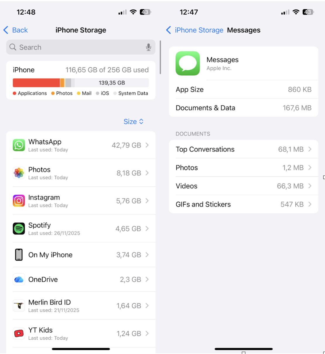 Ρυθμίσεις > Γενικά > Αποθήκευση iPhone > Μηνύματα.