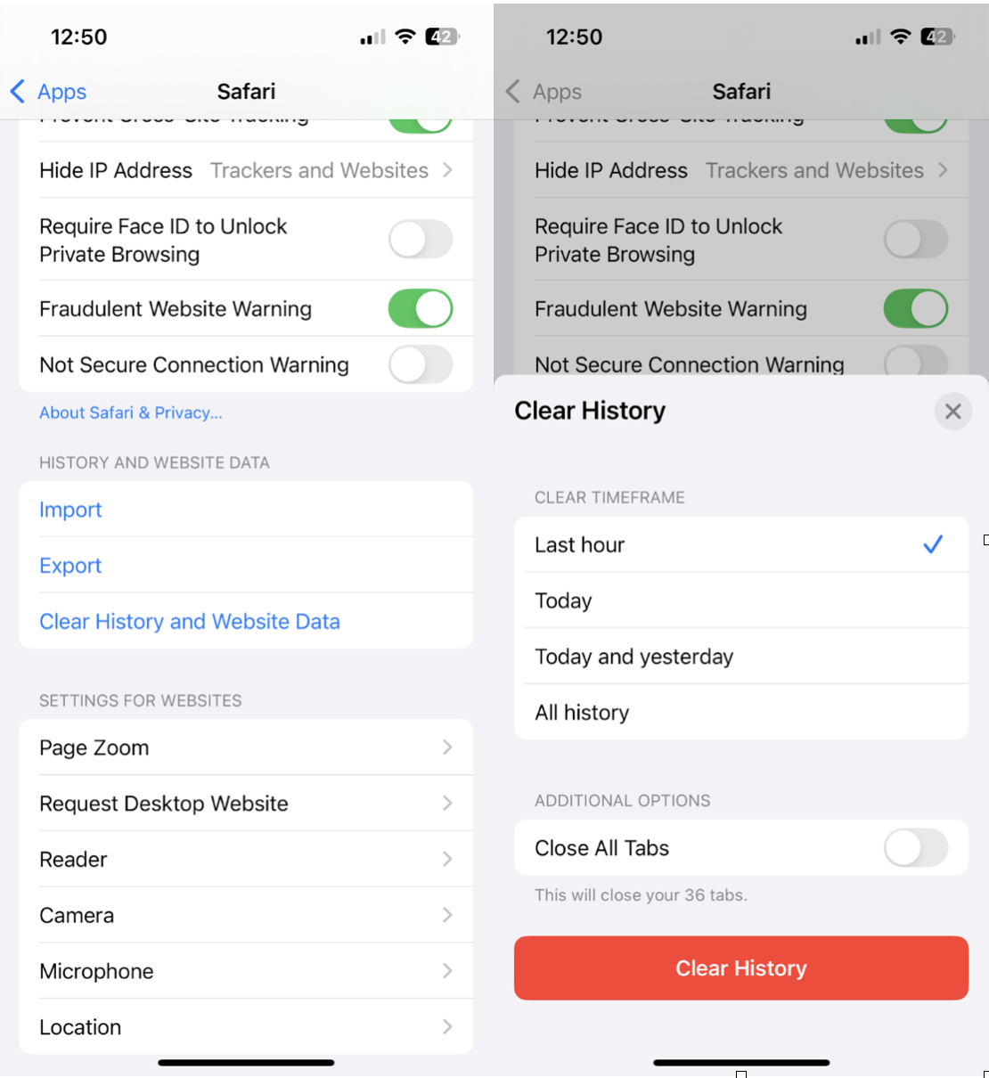 Κάντε κύλιση προς τα κάτω και βρείτε Εκκαθάριση ιστορικού και δεδομένων ιστότοπου.