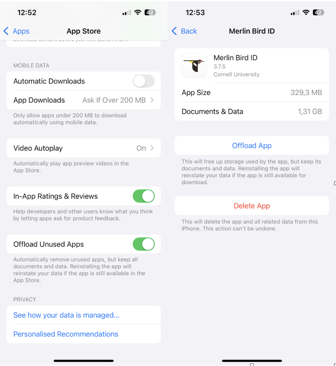 Βρείτε εφαρμογές που δεν χρησιμοποιείτε τόσο πολύ > Εκφόρτωση εφαρμογής.
