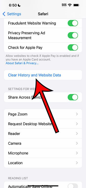 Μπορείτε να καθαρίσετε το ιστορικό σαφάρι στο iPhone σας 14 πηγαίνοντας στοΡυθμίσεις> Safari> Καθαρίστε τα δεδομένα ιστορικού και ιστότοπου> Καθαρίστε το ιστορικό και τα δεδομένα.