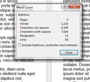 - Στις νεότερες εκδόσεις της Microsoft Word, όπως το Word για το Office 365, η επιλογή να συμπεριληφθούν τα κείμενα, οι υποσημειώσεις και τα endnotes ελέγχονται από προεπιλογή. Εάν χρησιμοποιείτε τον μετρητή χαρακτήρων επειδή πρέπει να πληροίτε συγκεκριμένες απαιτήσεις, είναι χρήσιμο να γνωρίζετε εάν αυτές οι τοποθεσίες πρέπει να συμπεριληφθούν ή όχι στην καταμέτρηση.