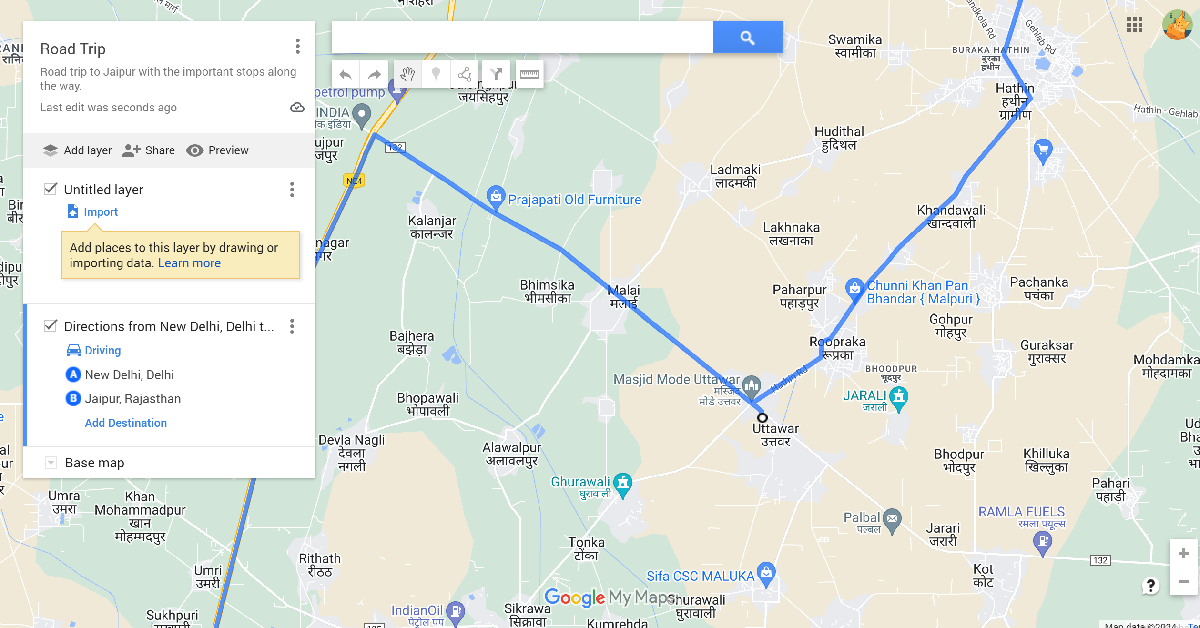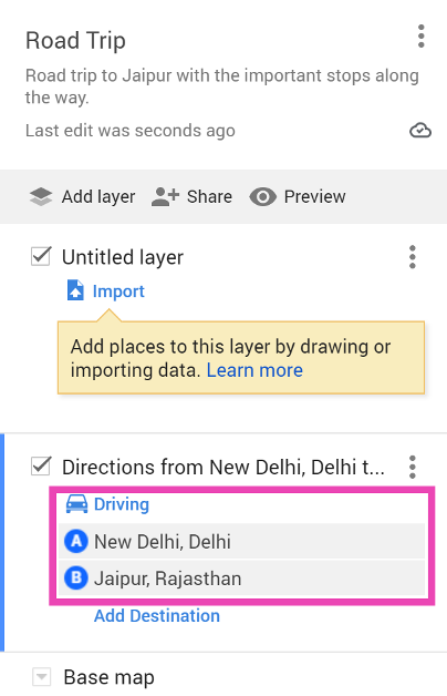 Βήμα 8:Μπορείτε επίσης να κάνετε κλικ στοΠροσθήκη προορισμούΣτο πλαίσιο στρώματος και προσθέστε μια τοποθεσία στον χάρτη σας.