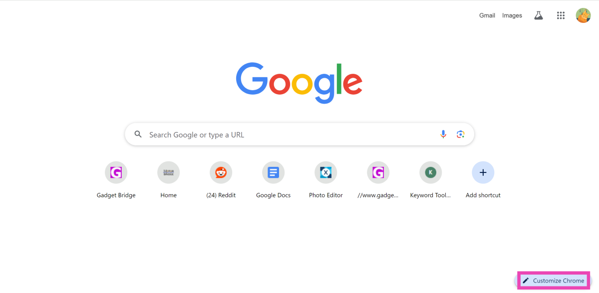 Βήμα 4:Ανοίξτε μια νέα καρτέλα και κάντε κλικ στοΠροσαρμόστε το ChromeΣτην κάτω δεξιά γωνία της οθόνης.
