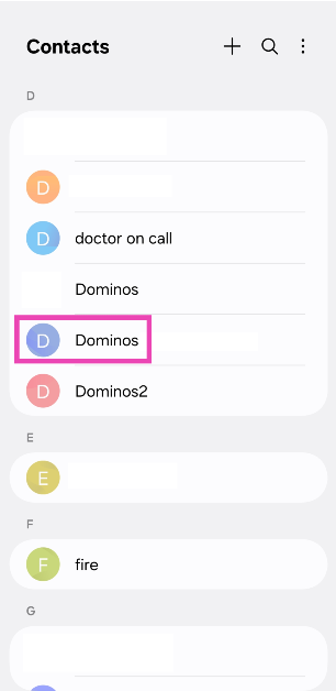 Ξεκινήστε την εφαρμογή Επαφών, επιλέξτε μια επαφή, μεταβείτε στοΠερισσότερα> Αλλαγή κραδασμών, και επιλέξτε ένα μοτίβο από τη λίστα.