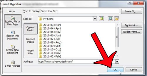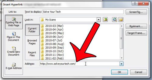 Σημειώστε ότι η πρώτη επιλογή σας επιτρέπει να καθορίσετε εάν συνδέεστε με μια ιστοσελίδα ή ένα αρχείο στον υπολογιστή σας ή σε μια μονάδα δικτύου. Εάν επιλέγετε ένα αρχείο στον υπολογιστή σας και σκοπεύετε να μοιραστείτε το έγγραφο λέξεων σας με κάποιον άλλο τότε θα χρειαστούν αρχεία ή κοινή χρήση δικαιωμάτων για την πρόσβαση σε αυτό το αρχείο στον υπολογιστή σας, διαφορετικά ο υπερσύνδεσμος δεν θα λειτουργήσει.