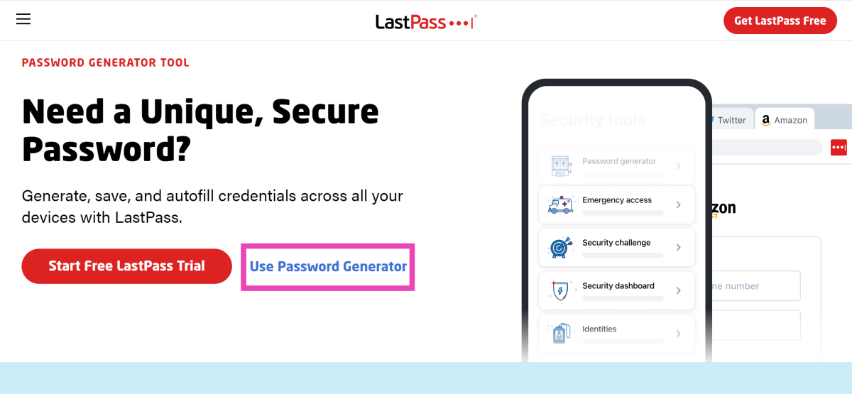 Βήμα 1:ΠηγαίνωLastPass"Σελίδα γεννήτριας κωδικού πρόσβασης.