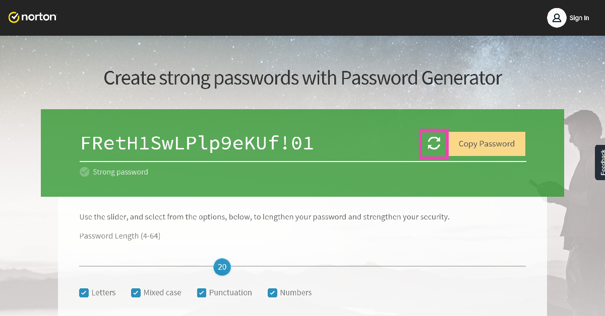 Χρησιμοποιήστε τη γεννήτρια κωδικού πρόσβασης Norton