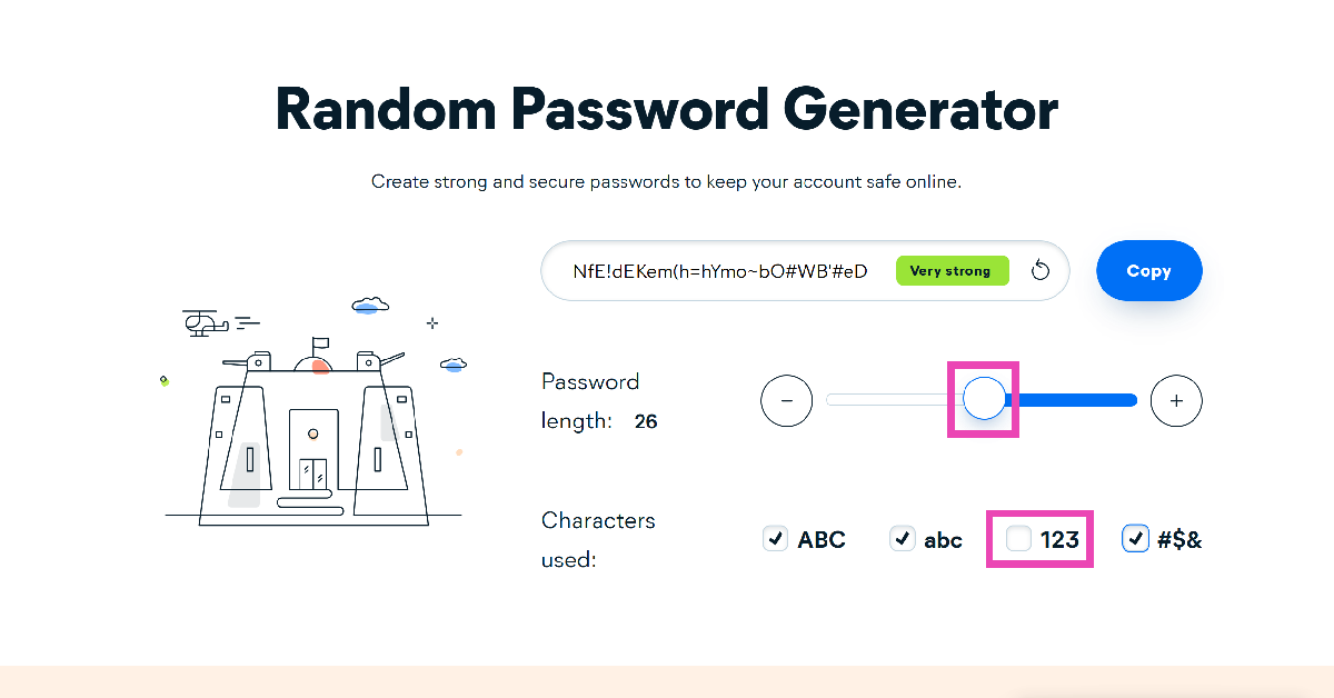 Βήμα 3:Για να δημιουργήσετε έναπροσαρμοσμένος κωδικός πρόσβασης, χρησιμοποιήστε τοολισθητήςγια να διορθώσει το μήκος του και να χτυπήσει τοπλαίσιο ελέγχουΔίπλα στους χαρακτήρες που θέλετε σε αυτό.