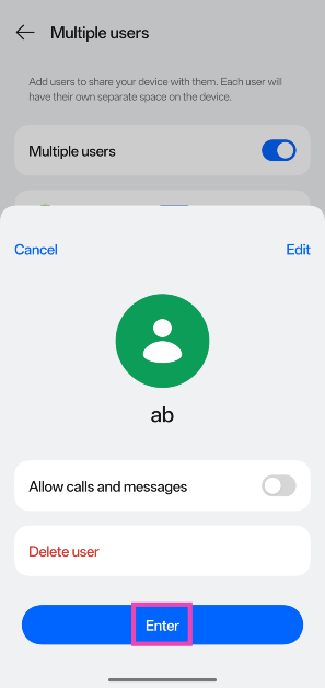 Μπορείτε να έχετε πολλαπλά προφίλ για διαφορετικούς χρήστες στο τηλέφωνό σας Android. ΠηγαίνωΡυθμίσεις> Χρήστες & Λογαριασμοί> Πολλοί χρήστεςγια να τα ρυθμίσετε.