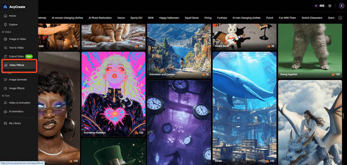 Για γρήγορα και κομψά αποτελέσματα, η Anycreate προσφέρει διορθώσειςεφέ βίντεο anime.